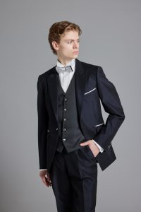 特徴的なダブルブレストのベストも男性らしい重厚感を加え、