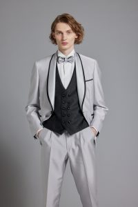 こちらも結婚式では定番のシルバー系タキシードに新潮流が登場