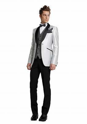 ここ数年、オシャレなユーザーさんから支持を得た人気の新スタイルなタキシードと呼べるのではないでしょうか?