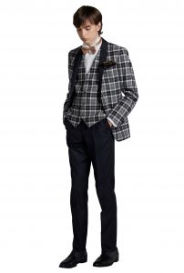 新郎が結婚式でレンタルするチェックのタキシード20348