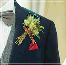 花婿のタキシードも英国を代表するタータンチェックのひとつ、ブラックウォッチ柄のジャケットに