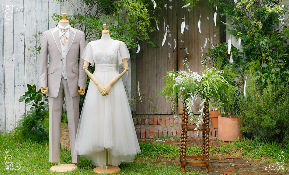 終始笑顔で過ごしたいと思い描くおふたりにぴったりなウエディングウエアです。
