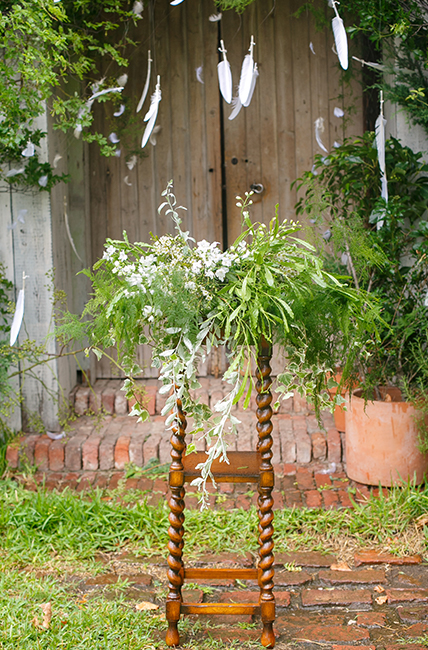 ガーデンに設置された祭壇は招いたゲストの方々に見守られる式で誓う、宣誓書だけを置く小さなもの。