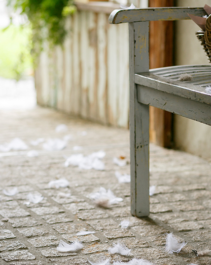 白い羽根は鳥が巣立ち、飛び立つ様子を示しており、挙式後にゲストに見送られる際のフェザーシャワーもふたりの新しい旅立ちへのはなむけのひとつ。