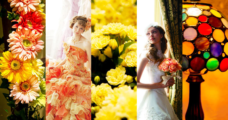 爽やかなレモンイエローから、ジューシーなキャロットオレンジまで、鮮やかでポップなイメージのYellow系。ウエディングのテーマカラーとしても大人気です。 アイキャッチとなるインパクトも強いので、それに合わせるタキシードは少し優しいカラーリングのチョイスがオススメ。 シャンパンやブラウンのタキシードで上品にエスコートをキメてみて!
